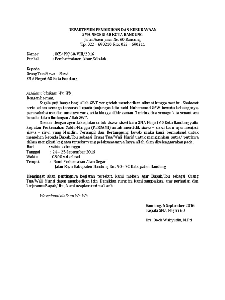 Mengikuti Kegiatan Pramuka Contoh Surat Izin Orang Tua - Bagi Contoh Surat from static.fdokumen.com Contoh surat izin terdiri dari beberapa macam, mulai dari surat izin sekolah, surat izin kerja, surat izin kegiatan, surat izin kuliah, dan beberapa jenis surat izin lainnya. Adapun contoh dari surat permohon izin adalah seperti misalnya anda meminta izin untuk menjadi seorang pembicara dalam suatu seminar maupun juga membuat surat permohonan izin dengan tujuan untuk meminta mutasi atau surat permohonan kegiatan sekolah. Contoh surat izin meninggalkan sekolah. Contoh surat izin orangtua untuk mengikuti kegiatan sekolah. Berikut ini beberapa contoh surat izin tidak masuk sekolah yang bisa kamu jadikan referensi dalam membuat surat izin yang baik dan benar. Surat izin merupakan surat yang berisi keterangan seseorang untuk meminta izin kepada instansi, salah satunya sekolah. Sedikit berbeda dengan surat izin sekolah, surat izin untuk mahasiswa biasanya ditulis sendiri oleh orang yang bersangkutan. Contoh surat izin tidak sekolah karena peristiwa, acara atau kegiatan tertentu.